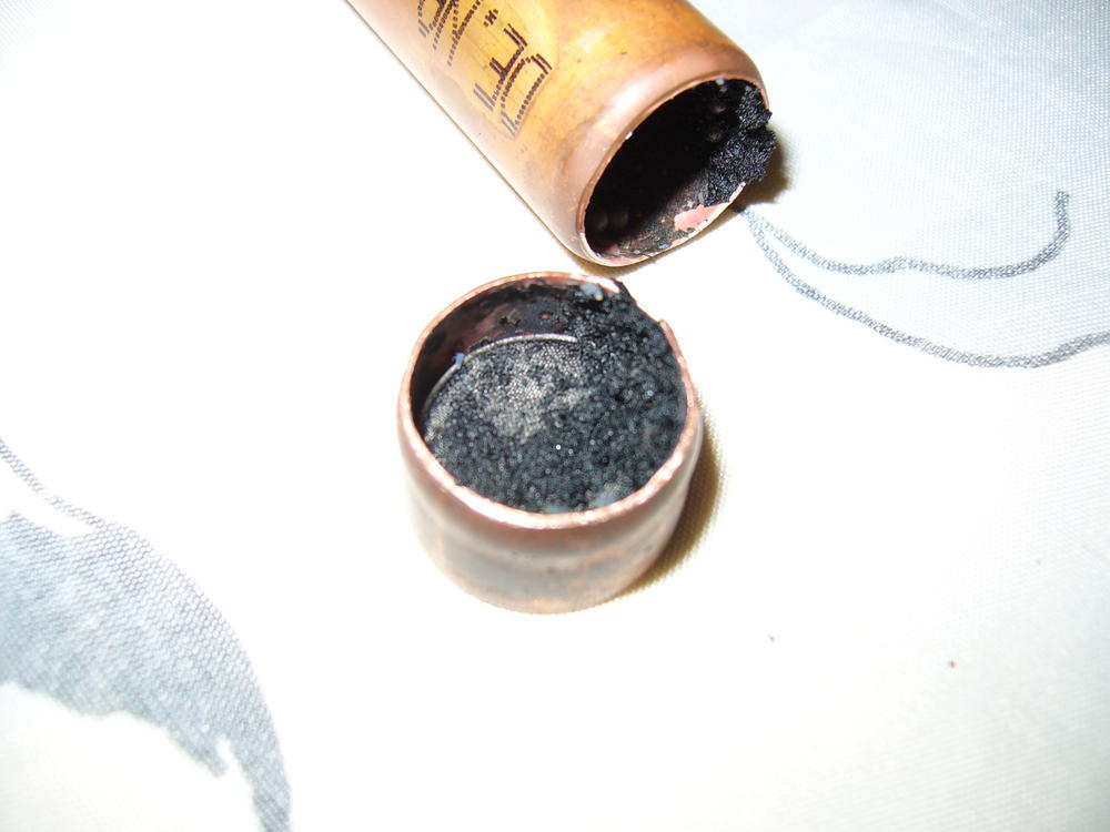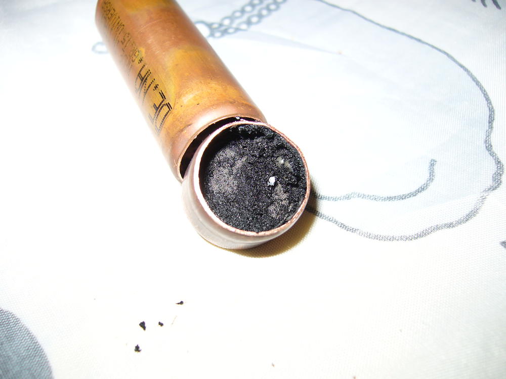 Разрезал фильтр. Весь чёрный циолит и спрессованный в камень.
