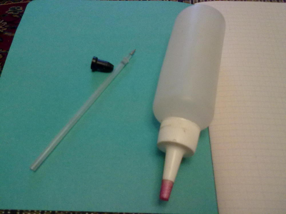 Хотелось подкрепить фотографиями, но сделаю немного позже. Итак вы держите в руках пластиковый флакон с под пергидроля, предварительно вымыт. Убедитесь что без переделок уже готовая маслёнка, или с помощью пустого флакона можно продуть, а набрав в него жидкость промыть, например при чистке ТРВ.