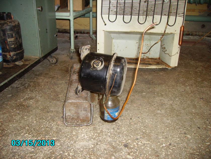 Так уж получилось, что эта горелочка у меня давно верой и правдой служит и я ей ненарадуюсь. Но на работе в постах опять кислорода нет и не предвидется. Решил для рработы прикупить на eBay TS8000 и запитать ее от баллона с пропаном. Горелка уже в пути, ну а пока решил испытать свою на пропане, а тут как раз вовремя холодос подарили "на запчасти" с чудным названием САМАРКАНД 2. Подключил шланг одел экран и начал извращаться. Фильтр с трудом отпаял, трубку медную от конденсатора легко, и все!!! больше ничего распаять не удалось. При попытке отпаять всас трубка обломилась.