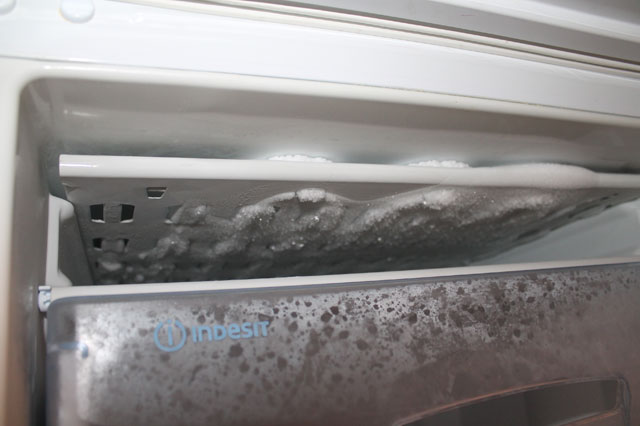 В холодильнике Indesit BH20 сломался термостат холодильного отделения (с морозилкой всё ОК). При включении он бесконечно морозит, на задней стенке вверху появляется огромный кусок льда.