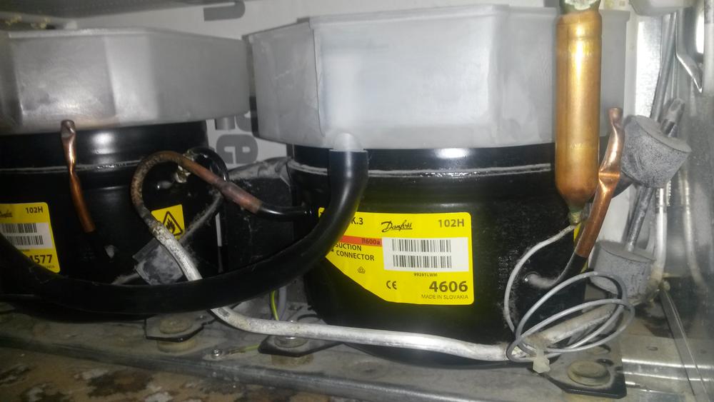 нет ни напряжеметра, ни чего нибудь еще. я чайник. компрессор греется, рука не терпит. радиатор сзади - верхняя часть теплая, нижняя, которая "отвечает" за морозилку холодная. еще вопрос - есть ли какой то запах у используемого газа (R600a), не могло быть утечки? был сильный химический запах на кухне за день до поломки. у соседей этажом ниже ремонт, решили что от них.
