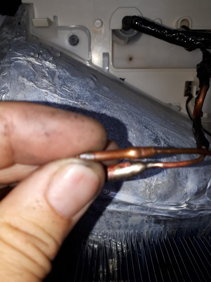 Доброго времени суток! Решил написать про утечку в удивительном по крайней мере для меня месте, пригласили меня на ремонт такого чудо холодильника как toshiba gr-42, по модели могу ошибаться. Жалоба, не холодит но мотор работает, после долгой разборки этого пирога из пластика и пенопласта обнаружил что промерзания на исарителе нет, воткнул проколку а в системе пусто, опресовав его долго прощупывал и гадал где же может быть свист, испарители чистые, не гнилые, трубопровод медный, да и холодильнику всего 3 года, в общем смотрите сами Вложение 5176Вложение 5177Вложение 5178Вложение 5179Вложение 5180 извините за качество фото, кому не понятно , в переходе с кт на испаритель лопнула труба медная, не пайка, не обжим, а именно труба по середине, удивительно как это могло произойти?!, в итоге поблагодарил холодильного бога что достаточно быстро нашел течь, это все благополучно перепаял, поменял фильтр с которым тоже не мало помучался изрезав руки, так как там все ну очень тесно, и перезаправил. все удачно. надеюсь кому то это будет полезно!