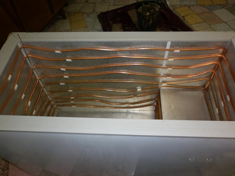 Можно. Вспомнил к стати. Негодные испарители, которыми предыдущий мастер трубки закрыл я таки снял, а трубку после приведения её в надлежащий вид уложил в алюминиевые полки-решётки от ШХ-0,8. ШХ-0,4. Восьмёрка в них встаёт как родная и после крепления к стенке, трубок вообще не видно. Ещё откладывал эти решётки, думал трубы всегда много будет, а вон оно как обернулось, листовых теперь навалом и цены не сравняться с трубой.