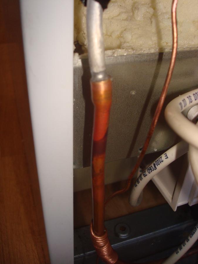 Типа для теплообмена, я потом термотрубкой обматывал, крышку подобрал, но не родную, родная не сохранилась. Фото больше не делал. Спасибо за критику, всё учтём. Я делал алюмин.-алюмин. стык, замена ФО. Капилляр и так был гнуто- перегнутый, навивать красиво- риск сломать, менять- не рационально, и так геморроился, пока переделывал, а заплатили как за обычную заправку, т.как для квартирантов. Видимо до этого долго искали мастера подешевле, потому и напоролись..