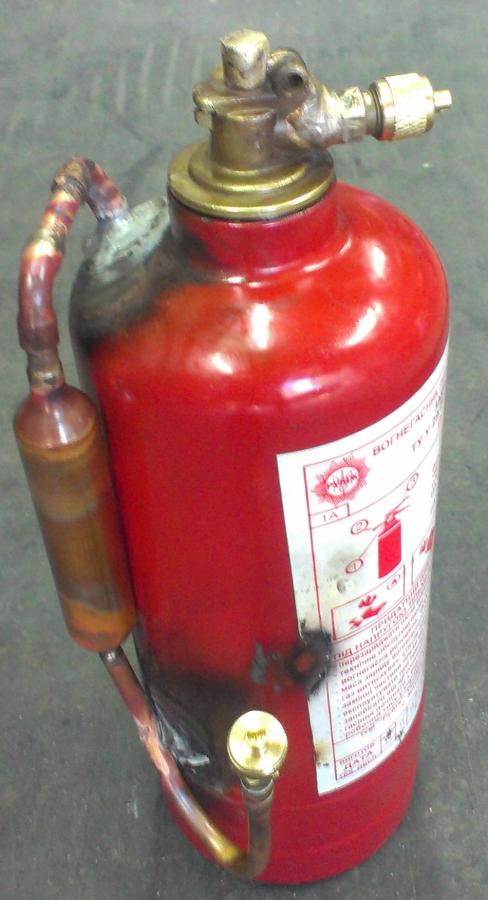 Тело от огнетушителя порошкового и выпотрошенные фильтра с сеточками.