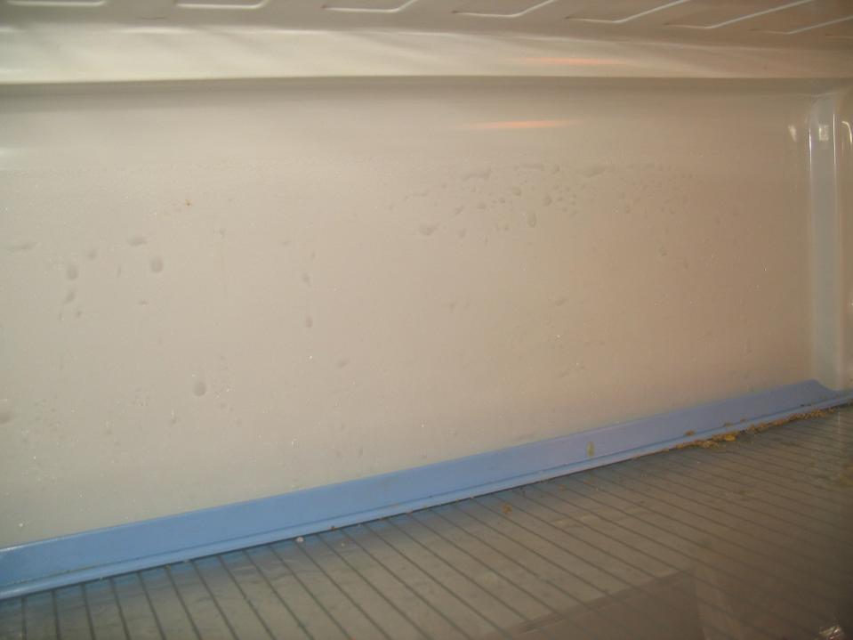 задняя стенка закрыта теплым конденсатором (трубкой в которой хладагент остывает)... там доступа чтото увидить нету ... боковая стенка (наружняя сухая) впрочем как и наружний угол в этом месте