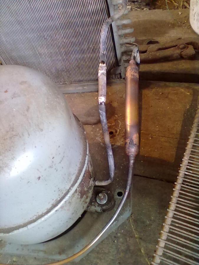 Полесье-холод, благодарен!, я его броней забодаю. мне вот чего не понятно; выпоял капиляр с этого испарителя, диаметр 0.6, длинна 23см, он обломам был. после кондера стоял рессивер, что на фото. компрессор целый! что ЭТО был за аппарат? трубка медная, что на входе в испаритель, вроде оттянута в ручную. начинаю потихоньку выезжать и не пойму в каком он был ваккуме с этой капиляркой.
