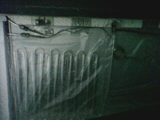 Так вот, поскольку после оттайки перестало обмерзать ровно половина испарителя, то думаю, что он устроен из двух параллельный ветвей, запитывается от конденсатора через одну капиллярку, которая за тем раздваивается на две, что-бы уравнять гидравлическое сопротивление обеих половин. Видимо одна из этих капиллярок забилась или ее "прихватило" хотя последнее маловероятно, поскольку в системе ФО хватает с избытком. Сразу скажу, с задней стороны добраться до конструкции, что-бы увидеть устройство и понять принцип действия не получилось, поскольку пенопласт намертво примерз к испарителю.