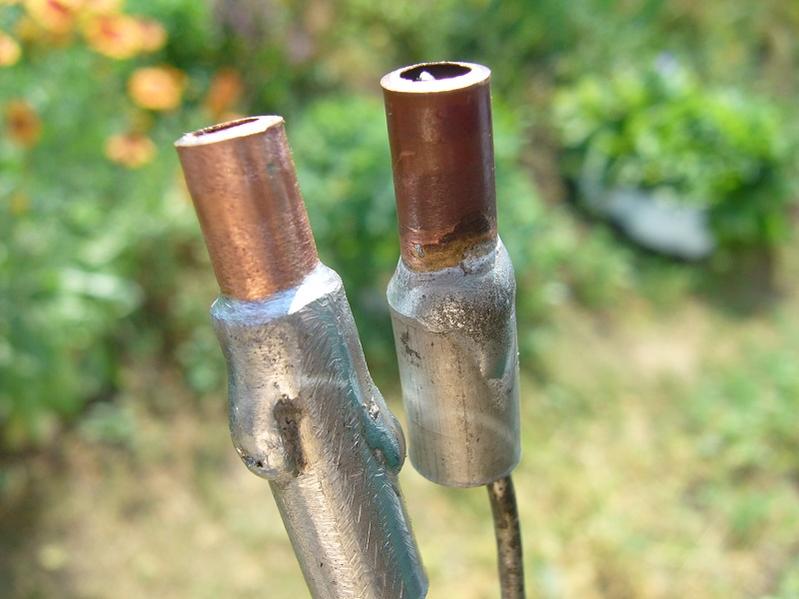 паял медь с алюминием первый раз, немного потренировавшись, получилось крепко, но не очень эстетично, пока.