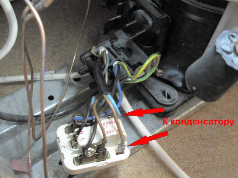 Путем прозвона проводов мною было выяснено, что в пусковом реле мастером были перепутаны провода конденсатора и электронной платы управления (в электрике он не особо силен, это я понял, когда в прошлый раз он чуть не сжег плату - осталась большая черная копоть, да и сейчас его зацепило оставшимся током кондера).