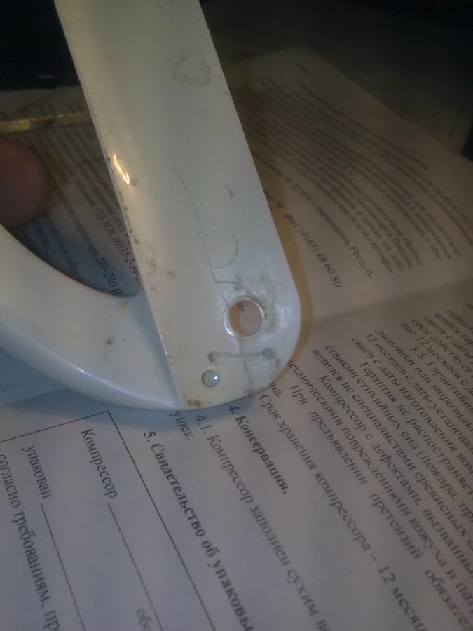 Продолжу тему ремонта пластика. Речь пойдет о ручке ХК х-ка Снайге. Материал тот же. Технология несколько сложнее. Чтобы соединить две половинки треснувшей детали, нужно просверлить два глухих отверстия и вставить стальную шину (английская булавка). Заливаем супером, шлифуем, красим (3 раза). Результат перед вами. Кстати, холодильник мой.