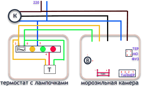 Мне нужна помощь вот в чем, в морозилке 5 проводов я нарисовал схемку.
