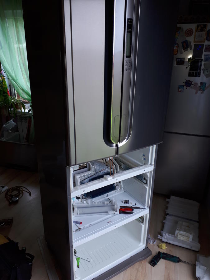 Доброго времени суток! Решил написать про утечку в удивительном по крайней мере для меня месте, пригласили меня на ремонт такого чудо холодильника как toshiba gr-42, по модели могу ошибаться. Жалоба, не холодит но мотор работает, после долгой разборки этого пирога из пластика и пенопласта обнаружил что промерзания на исарителе нет, воткнул проколку а в системе пусто, опресовав его долго прощупывал и гадал где же может быть свист, испарители чистые, не гнилые, трубопровод медный, да и холодильнику всего 3 года, в общем смотрите сами 20180807_115547.jpg20180807_115524.jpg20180807_115506.jpg20180807_122853.jpg20180807_121315.jpg извините за качество фото, кому не понятно , в переходе с кт на испаритель лопнула труба медная, не пайка, не обжим, а именно труба по середине, удивительно как это могло произойти?!, в итоге поблагодарил холодильного бога что достаточно быстро нашел течь, это все благополучно перепаял, поменял фильтр с которым тоже не мало помучался изрезав руки, так как там все ну очень тесно, и перезаправил. все удачно. надеюсь кому то это будет полезно!