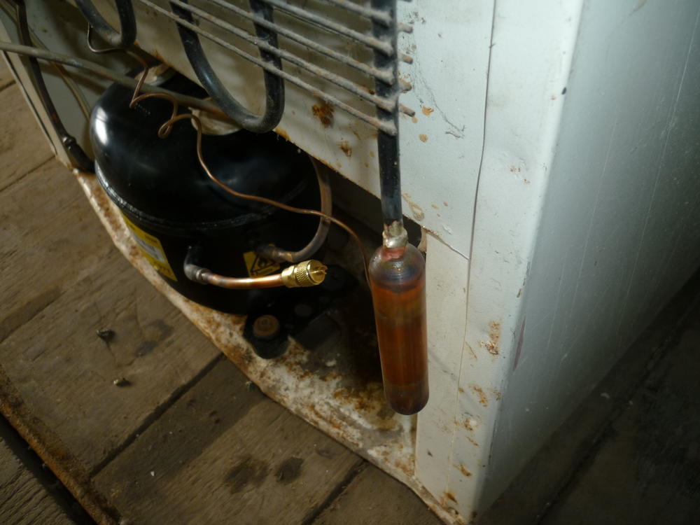 Некоторые клиенты просят забрать заменённый компрессор, как набирается в гараже кучка штук в пятнадцать, закидываю их на чердак с перспективой когда-нибудь разрезать и сдать в лом. Вчера выдался спокойный денёк и именно этим я и решил заняться. Но перед вывозом надумал заклиненные бытовые раскрутить. Результат? На первом фото: пойдут в лом, с прилавков компрессора не дёргал, бытовые неисправные по сопротивлению обмоток. На втором фото: все оставшиеся компрессора, имеющие нормальное сопротивление обмотки поддались срыву, один и срывать не пришлось. На третьем: 600-ый реанимированный уже в действии на Апшероне, который год мешался в гараже и ждал своей очереди. Куда теперь его не знаю, наверное ded-у в Крым у них там сезон. Четвёртый снимок для Вьюги, "пайка с прищепом", обратите внимание что конденсатор тоже 6-ка, как и фильтр, но и в этом случае прищеп катит.