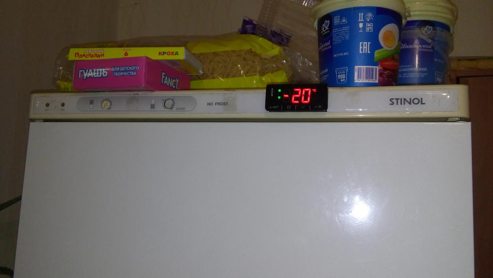 Заглянул я как-то раз в морозилку своего стинола и увидел частичное облединение испарителя. Явно дело не в оттайке. 100% утечка. Вырезал я ему преславутую петлю подогрева резинки, заменил фильтр, перезаправил, запустил. На следующий день заметил что работает, но не отключается. Промерил температуру объема (-25). Термостат на минимуме, а реакции ноль. Поехал купил термостат. Установил, запустил. Работает. Включается, отключается, температуру держит (-22). Успокоился, живу дальше.Через 3 недели ко мне подходит супруга и протягивает мне растаявший в хлам кусок теста из морозилки... Подхожу, смотрю на испаритель и... Поддон для стока талой воды льдом выгнуло и разломило! Принудительная оттайка горячей водой. Добираюсь до испарителя, проверяю элементы. В итоге тэн оттайки-труп! Тэн в поддоне для стока конденсата-труп! Вентилятор испарителя-труп! В оттайке бытовиков не силен. По этому как проверить релюху оттайки и ту черную коробочку на испарителе я не знаю. Принял решение перевести управление морозилкой и ноуфростом с механики на автомат. Установить контроллер. Тэна на испаритель я не нашел, как и вентилятора (может быть плохо искал), поэтому вместо родного тэна установил кабель АКО. Кто не знает это тонкий, гибкий, греющий провод. Мощность выбрал 30 ватт. В заводском варианте тэн окутывает весь испаритель в круг, а АКО я растянул только по низу испарителя. Его мощности хватает чтоб полностью протянуть испаритель. Вместо родного винта установил МЭД 5 ватт. Вентилятор который применяется в торговом холоде. Пришлось поколдовать с креплениями и креплением крыльчатки. Установил. МЭД встал как родной, но работает чуть громче. Далее контроллер. Выбрал недорогой и надежный двухдатчиковый сенсорный EVKO EV3B23N7. Вытряхнул из морозилки 2\3 лишней проводки. Вместо капиллярки термостата просунул в отверстие датчик объема. Просверлил дырку и просунул туда датчик испарителя. Настроил контроллер и запустил холодос. Медленно, но верно камера начала набирать температуру. Напрягло что медленно... С чистой совестью и с чувством морального удовлетворения пошел спать. Утром встаю, первым делом к холодосу, а там......... Контроллер в ошибке по высокой температуре! Я к компрессору, а на нем яйца жарить можно!!! Включается, рубится... Включается, рубится... Промерил ток (14 ампер). Ну вот и пи.... компрессору. Плакать захотелось. Психанул, поехал в магаз за новым холодосом. Приехал, увидел ценник (35000), успокоился. Поехал купил компрессор GVM 57AA за 3300, заменил, запустил, работает уже 3 месяца.