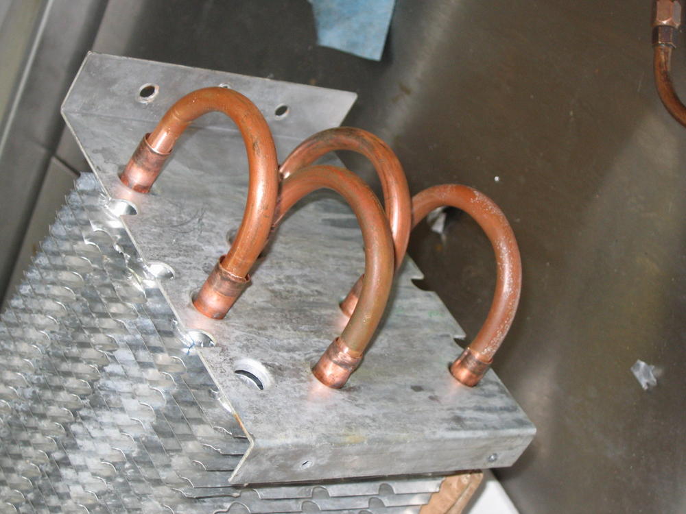 Опрессовывал сжатым сухим воздухом 15 бар. Калачи оказались худые, как решето. Медь - чуть толще бумаги. Металл на калачах пережжен. Едва отрезал труборезом - просто сминает. Да и место "уютное".