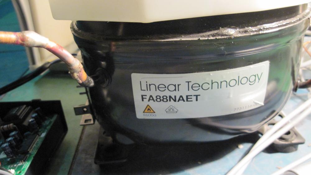 Компрессор линейный, с инверторным управлением. Управление с блока - 5v постоянного тока. Холодильная система - двухкамерная статика с импульсным клапаном. Родной компрессор стоит больших денег...