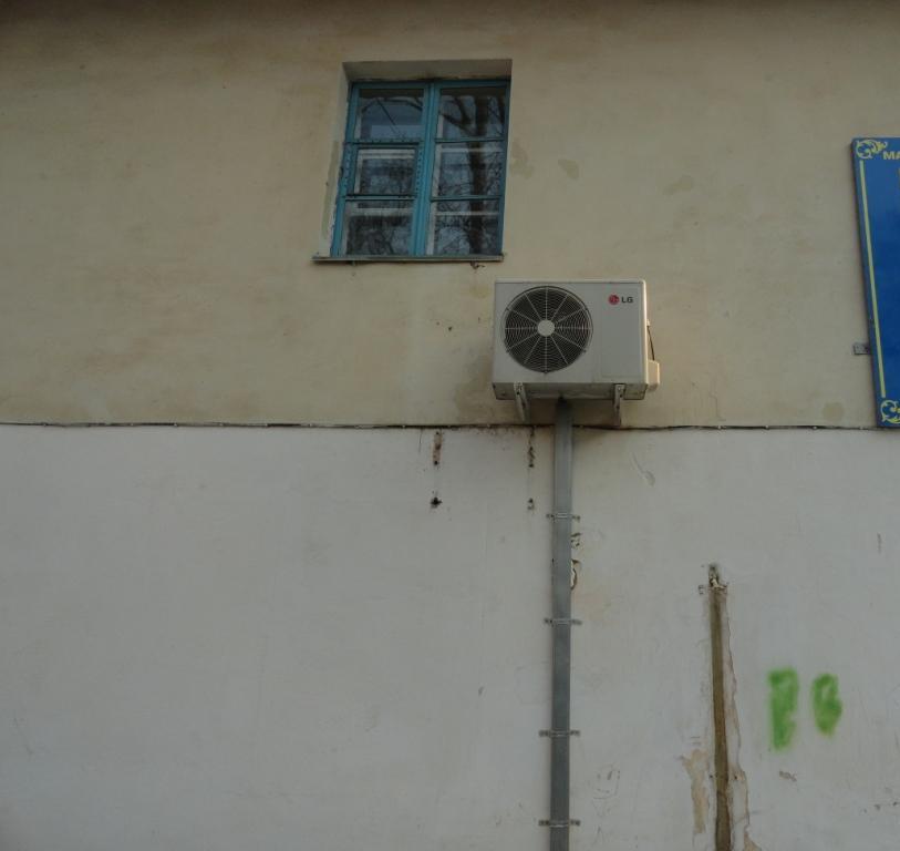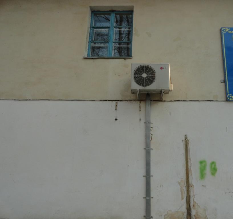 Хулиганы (баскетболисты наверно) загнули трубы на кондиционере.